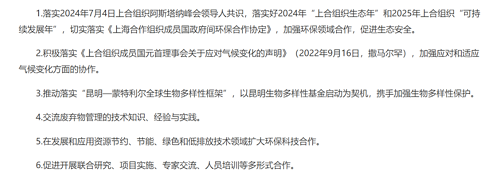 7月8日,以“攜手綠色發(fā)展,推動人與自然和諧共生”為主題的上海合作組織國家綠色發(fā)展論壇在山東省青島市開幕。本次論壇是中方作為輪值主席國舉辦的首場高級別活動,旨在推動上合組織國家在綠色能源、綠色產(chǎn)業(yè)、應對氣候變化等領域深度合作。會上發(fā)布“共建綠色發(fā)展伙伴關系,共促可持續(xù)發(fā)展”倡議。(據(jù)中國政府網(wǎng)、生態(tài)環(huán)境部)