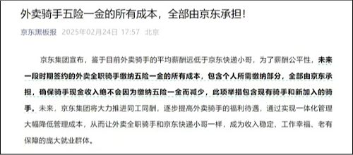 2月24日,京東集團就五險一金個人所需繳納部分發(fā)布聲明
