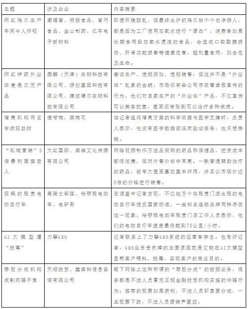 除此之外,在3·15期間,紅星新聞、新京報、福建廣電、2026天津海河傳媒中心3?15晚會等也揭露了一系列食品、消費、金融、醫(yī)藥等領域的亂象: