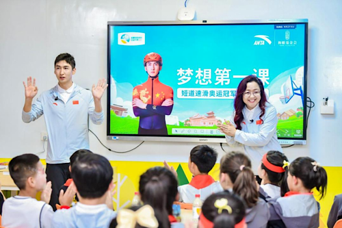 奧運冠軍、安踏公益超A伙伴武大靖與同學們分享逐夢故事