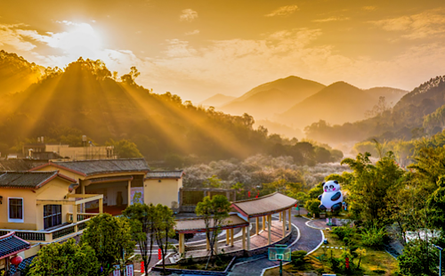 “師傅,這真是東明村?”出租車剛停在粵東潮州的群山腳下,來訪者望著眼前景象便忍不住發(fā)問——竹林邊的廣場上,統(tǒng)一著裝的村民們伴著輕快的音樂翩翩起舞;磚石鋪就的步道旁,葳蕤的樹木上掛著喜慶的紅色燈籠……這分明是精心打理的郊野公園景致,實在難與鄉(xiāng)村的傳統(tǒng)印象劃上等號。