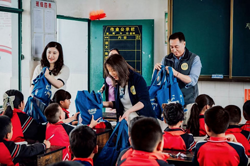 基金會及怡顆莓、百果園企業(yè)代表為當(dāng)?shù)貙W(xué)生贈送禮物