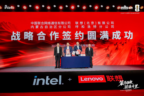 當(dāng)日大會(huì)上,除生態(tài)公益外,聯(lián)想與內(nèi)蒙古的科技合作再結(jié)碩果 —— 聯(lián)想(北京)有限公司呼和浩特分公司與中國(guó)聯(lián)合網(wǎng)絡(luò)通信有限公司內(nèi)蒙古分公司正式簽署2026—2029 年戰(zhàn)略合作協(xié)議。內(nèi)蒙古聯(lián)通黨委書記、總經(jīng)理韓敏出席并見證簽約,期待與聯(lián)想攜手共拓?cái)?shù)智合作新局。雙方將立足資源共享、優(yōu)勢(shì)互補(bǔ),在基礎(chǔ)通信、云計(jì)算、大數(shù)據(jù)、5G + 行業(yè)應(yīng)用、網(wǎng)信安全、國(guó)產(chǎn)適配、科技創(chuàng)新等九大領(lǐng)域深度協(xié)同,共同推動(dòng)內(nèi)蒙古數(shù)字經(jīng)濟(jì)高質(zhì)量發(fā)展。