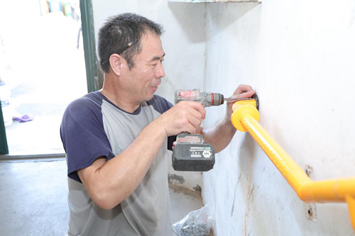 “穩(wěn)當(dāng)當(dāng)計(jì)劃”被窩整裝工人志愿者安裝扶手現(xiàn)場(chǎng)