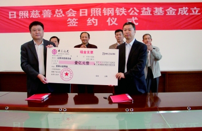 在積極參與企地共建、為地方慈善事業(yè)增添力量的同時(shí),日照鋼鐵還將目光投向更遠(yuǎn)的地方。2007年,日照鋼鐵向中國(guó)醫(yī)藥衛(wèi)生事業(yè)發(fā)展基金會(huì)捐款1億元;2008年,向山東省殘疾人福利基金會(huì)捐款20萬元;2009年起先后向上海增愛基金會(huì)捐款6200萬元;2010年,向北京大學(xué)教育基金會(huì)捐款8500萬元,向北京工商大學(xué)教育基金會(huì)捐款20萬元;2011年,向中國(guó)兒童少年基金會(huì)救助貧血兒童計(jì)劃項(xiàng)目捐款2000萬元,同年為吉林省歌劇事業(yè)捐款2000萬元;2012年,向山東省愛心助殘單位捐款30萬元,同年向北京科技大學(xué)教育基金會(huì)捐款80萬元;2013年向北京理工大學(xué)教育基金會(huì)捐款100萬元,同年12月份,響應(yīng)山東省慈善總會(huì)發(fā)起困難群體救助倡議,向困難群體救助基金捐款500萬元……