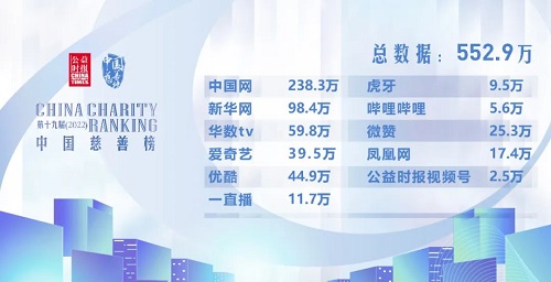 傳播數(shù)據(jù)是最為直觀的體現(xiàn)。5月30日第十九屆(2022)中國慈善榜發(fā)布活動開播后,短時間內(nèi),幾大直播平臺就有總計(jì)超過552.9萬人次同時在線觀看,引發(fā)了極大的社會關(guān)注。