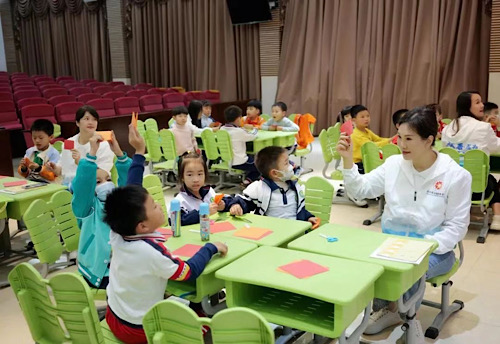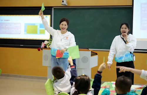 翟美卿在課堂上和孩子們互動