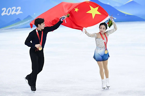 2022年2月19日,北京冬奧會(huì)花樣滑冰雙人滑比賽,隋文靜/韓聰奪冠。圖片來(lái)源:新華社