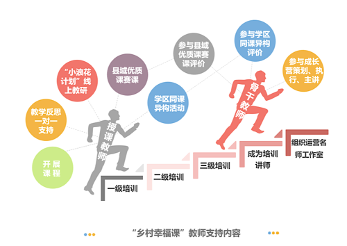 在成長(zhǎng)層方面,通過(guò)跨省“同課異構(gòu)”教研,由專家老師帶領(lǐng)地方骨干教師通過(guò)一次次實(shí)操練習(xí),學(xué)習(xí)系統(tǒng)化的課堂評(píng)價(jià)和帶領(lǐng)教研;
