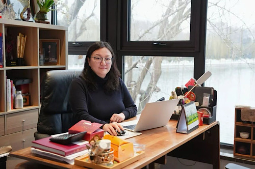 從宋妍位于后海的辦公室望出去,后海水面靜謐無波,但其下卻蘊(yùn)含著整個春天的涌動與生機(jī)。窗內(nèi),著紅色休閑衣的宋妍,長發(fā)自然垂落,正端坐于電腦前,專注地處理著事務(wù)。窗臺上,兩盆紅色花卉迎雪盛放,以最熱烈的姿態(tài),訴說著生命本真的堅韌。