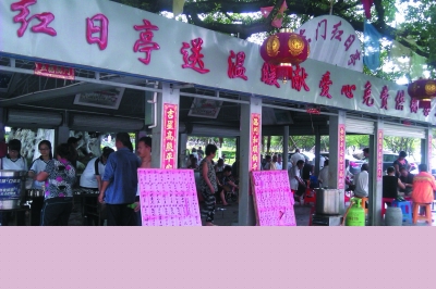 “紅日亭”先前是一個“伏茶”點,在溫州,許多涼亭或熱鬧街道上,夏季“三伏天”都有一些老人們煮茶,免費供應路人解渴,免費供應伏茶時間一般從農歷六月初到八月末。