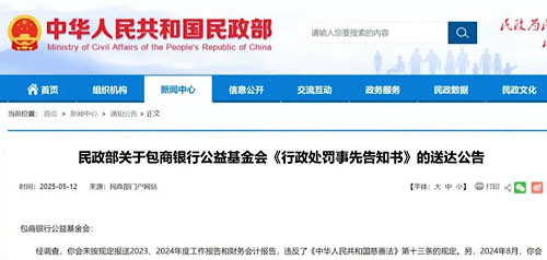 包商銀行公益基金會(huì),擬被吊銷登記證書