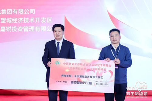啟動儀式上,中國華電集團有限公司宣布向中國社會工作聯(lián)合會捐贈地貧公益救助款1500萬元,長沙市望城經(jīng)開區(qū)捐贈善款130萬元,北京日信嘉銳投資公司捐贈善款100萬元,重點救助江西省等省(區(qū)、市)重癥地貧患者。為進一步明確各方責任,合法高效地完成救助項目,中國社會工作聯(lián)合會公益研究專項基金與江西省衛(wèi)健委簽署了《地貧公益救助協(xié)議》,與廣州瑞風生物科技有限公司簽署了《地中海貧血病公益救助戰(zhàn)略合作框架協(xié)議》。啟動儀式現(xiàn)場為中國華電集團有限公司、湖南長沙望城經(jīng)濟技術開發(fā)區(qū)、北京日信嘉銳投資管理有限公司、湖南嶺孟實業(yè)有限公司、遼陽國成熱電有限公司、中能潤峰偉業(yè)實業(yè)有限公司、深圳人才谷控股有限公司、北京國電中能電力設備有限公司、安徽利維新型建材有限公司、北京善在量子科技有限公司等十家愛心企業(yè)、單位頒發(fā)“支持社會工作事業(yè)發(fā)展社會責任愛心企業(yè)”證書。