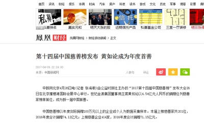 南方網(wǎng)、中華網(wǎng)、新浪網(wǎng)、中國新聞網(wǎng)、中國廣播網(wǎng)等多家媒體均從不同層面和角度對第十四屆中國慈善榜進(jìn)行了報(bào)道。