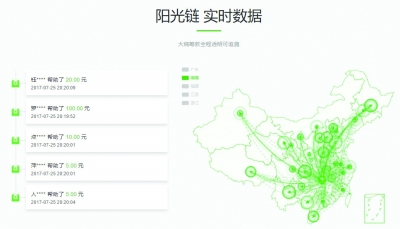 2017年7月底,輕松籌聯(lián)合6家基金會(huì)(中國(guó)紅十字基金會(huì)、中國(guó)婦女發(fā)展基金會(huì)、中國(guó)醫(yī)藥衛(wèi)生事業(yè)發(fā)展基金會(huì)、中國(guó)華僑公益基金會(huì)、中華少年兒童慈善救助基金會(huì)、北京微愛公益基金會(huì))成立了“陽光公益聯(lián)盟鏈”(以下簡(jiǎn)稱“陽光鏈”),其目標(biāo)十分明確:從捐贈(zèng)人捐贈(zèng)善款開始,到后期善款撥付給受助方,每一個(gè)環(huán)節(jié)都將記錄在陽光鏈中,并且任何機(jī)構(gòu)或個(gè)人都無法更改,公眾可以清晰地了解資金從捐贈(zèng)到使用的每一個(gè)環(huán)節(jié)。