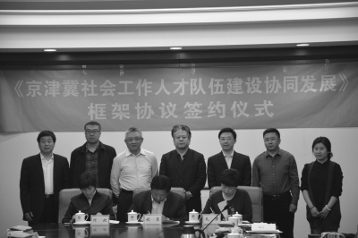 4月13日,北京、天津、河北三地社會工作行業(yè)協(xié)會(促進(jìn)會)在京共同簽訂《京津冀社會工作人才隊(duì)伍建設(shè)協(xié)同發(fā)展框架協(xié)議》,將進(jìn)一步促進(jìn)這一合作走向深入。
