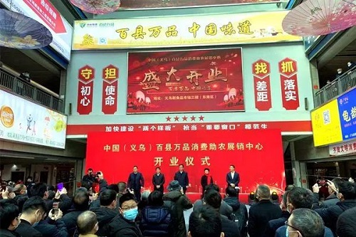 2020年12月30日,位于義烏副食品市場三樓的中國(義烏)“百縣萬品”消費(fèi)助農(nóng)展銷中心啟幕。圖片來源:消費(fèi)日報