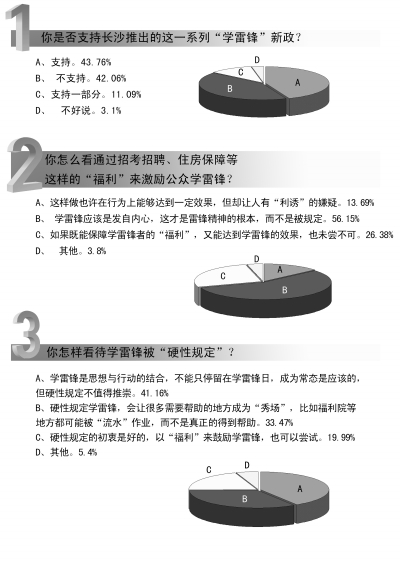 ■ 本報記者 張雪弢 多年以來,全社會一直都在大力組織開展“學雷鋒”活動,特別是每年的3月5日前后,全國各地都會掀起學雷鋒活動的熱潮。為了讓“學雷鋒”活動常態(tài)化,日前,長沙市委專門出臺了一系列的新政,不僅將學雷鋒活動作為全市各級領導干部年度考核依據(jù),而且,還將學雷鋒活動與評選評優(yōu)、招考招聘、社會禮遇、子女升學等進行掛鉤。 對于長沙市“重賞”學雷鋒,有人認為這是無可厚非的。社會中“老太太跌倒沒人扶”、“見義勇為遭誤解”的現(xiàn)象比比皆是,事實證明,“精神萬能”不管用,“空洞說教”也未必見效。在市場經(jīng)濟條件下,對道德踐行者實行道德回報,進行必要的保護和激勵,乃正常之舉。 但也有人認為,這樣用條條框框的硬性制度約束領導干部學雷鋒,以及將子女升學、住房保障這些“實惠”與學雷鋒活動進行牽扯,讓學雷鋒活動“變了味”。雷鋒精神的很多特性,比如忠誠于黨、全心全意為人民服務、甘當革命的“螺絲釘”、刻苦鉆研的“釘子”精神等,都應該是由內而發(fā)的,都應該是在其純潔思想指引下而產(chǎn)生的自覺行動。 那么,要想讓公眾在日常生活中踐行雷鋒精神,關鍵點究竟在哪兒?如果寄希望于招考招聘、住房保障等這樣的“福利”來激勵公眾學雷鋒,又是否能夠得到認可? 《公益時報》與搜狐公益聯(lián)手推出的“益調查”結果顯示,56.15%的網(wǎng)友認為,學雷鋒應該是發(fā)自內心,這才是雷鋒精神的根本,而不是被規(guī)定。 調查結果: 《公益時報》與搜狐公益聯(lián)手推出“益調查”,本次調查從2月24日11時至2月26日20時,共有1002位網(wǎng)友參與調查。 根據(jù)“益調查”結果顯示,43.76%的網(wǎng)友表示支持長沙推出的這一系列“學雷鋒”新政,而42.06%的網(wǎng)友則表示不支持;在參與調查的網(wǎng)友中,有111位表示對這一系列的“學雷鋒”新政支持一部分,3.1%的網(wǎng)友認為不好說。 網(wǎng)友們又是怎么看通過招考招聘、住房保障等這樣的“福利”來激勵公眾學雷鋒的呢? 56.15%的網(wǎng)友認為,學雷鋒應該是發(fā)自內心,這才是雷鋒精神的根本,而不是被規(guī)定;26.38%的網(wǎng)友表示,如果既能保障學雷鋒者的“福利”,又能達到學雷鋒的效果,也未嘗不可;而參與調查的網(wǎng)友中137位認為,這樣做也許在行為上能夠達到一定效果,但卻讓人有“利誘”的嫌疑。 對于學雷鋒被“硬性規(guī)定”,網(wǎng)友們也有自己的看法。 41.16%的網(wǎng)友認為,學雷鋒是思想與行動的結合,不能只停留在學雷鋒日,成為常態(tài)是應該的,但硬性規(guī)定不值得推崇;33.47%的網(wǎng)友表示,如果硬性規(guī)定學雷鋒,會讓很多需要幫助的地方成為“秀場”,比如福利院等地方都可能被“流水”作業(yè),而不是真正的得到幫助;同時也有近兩成網(wǎng)友認為,硬性規(guī)定的初衷是好的,以“福利”來鼓勵學雷鋒,也可以嘗試。 |