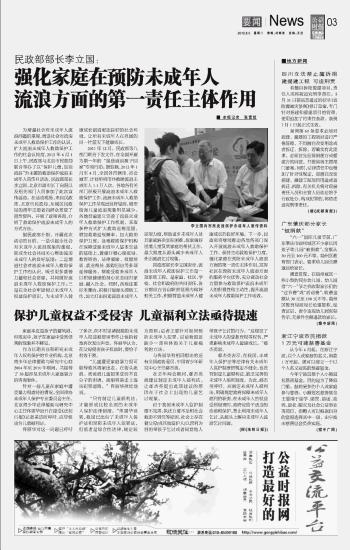 強化家庭在預防未成年人流浪方面的第一責任主體作用