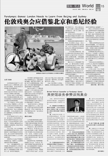 倫敦殘奧會(huì)應(yīng)借鑒北京和悉尼經(jīng)驗(yàn)