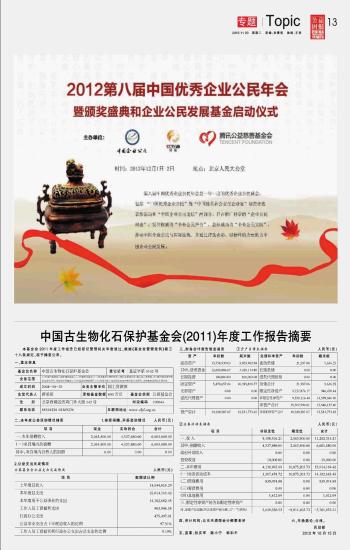 中國古生物化石保護基金會(2011)年度工作報告摘要