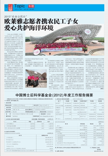 中國博士后科學基金會(2012)年度工作報告摘要