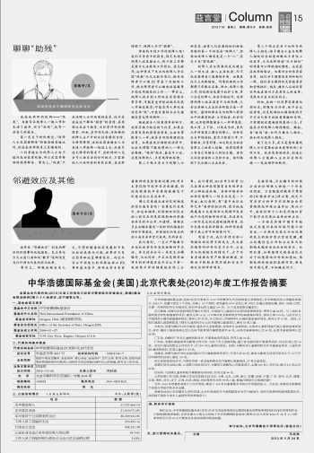 中華浩德國際基金會(美國)北京代表處(2012)年度工作報告摘要