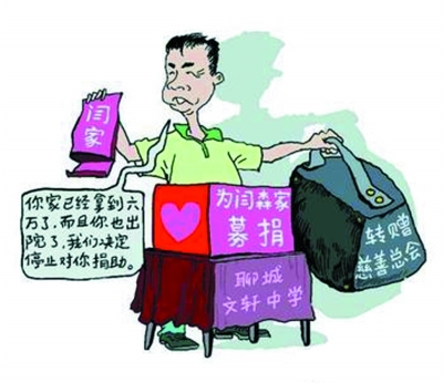 問:學(xué)校組織這次捐款是在什么情況下進(jìn)行的?捐款之后,學(xué)校又做了哪方面的工作? 文軒中學(xué)辦公室主任謝德芳:閆森是我們學(xué)校的學(xué)生,他去世后捐出了腎、肝、眼角膜,是一種大愛,他的姐姐也患上尿毒癥,這時候2010級二部和學(xué)校政教處、團(tuán)委就發(fā)出了捐款倡議。為了用好善款,對捐款人負(fù)責(zé),我們后來組織召開了家長委員會商定善款如何使用。我們覺得,善款是學(xué)生捐獻(xiàn)的,學(xué)生沒能力掙錢,學(xué)生的背后是家長,因此召開家長委員會。 問:家長委員會商定后拿出的是什么意見? 謝德芳:3月26日召開的家長委員會,經(jīng)過商定,所捐的款項(xiàng)用于閆森的姐姐閆淑青看病用。每一步我們都咨詢了律師,我們做的事情,合理合情合法。如果說給閆森捐,他已經(jīng)去世,沒必要了,所以倡議書上是說給閆森的姐姐捐款,這是家長委員會上一致通過的。隨后就和閆森的家長簽訂了《捐款協(xié)議書》。 問:閆森的父母對這筆捐款持什么態(tài)度? 謝德芳:他們多次到學(xué)校要錢,哭過、鬧過,想把剩下的善款全部要走,并說家庭困難欠債40多萬,并說捐錢是為閆森家捐的就要給他,后來又提出要一部分作為閆淑青的營養(yǎng)費(fèi)。當(dāng)時考慮到他的實(shí)際情況,讓其提供閆森、閆淑青前期未報(bào)銷的單據(jù),和看病期間的來回車費(fèi)、住宿費(fèi)單據(jù),將這些拿來后報(bào)銷。閆淑青的家長說沒有,沒有憑據(jù)我們沒法給他錢。后來又告訴他閆淑青以后上大學(xué)的學(xué)費(fèi)、生活費(fèi)都可以從善款中解決,但閆森的父母執(zhí)意要錢。 問:學(xué)校對這筆捐款又持什么態(tài)度呢? 謝德芳:我們堅(jiān)持按簽署的《捐款協(xié)議書》執(zhí)行,我們捐的錢用于救命、救急,但不救窮,我們當(dāng)時給他的家長解釋得很清楚。 問:這筆捐款怎么用,是誰說了算? 謝德芳:我們學(xué)校僅是善款的執(zhí)行者,全體師生及全體家長才有權(quán)決定善款的用途。學(xué)校的工作重點(diǎn)在教學(xué),我們沒有過多精力牽扯到這個事件當(dāng)中,為了讓善款有一個妥善的處理方式,我們提請家長委員會表決如何處理。 家長委員會上我們提供了幾種解決方案,全體家長一致同意采用如下方案: 鑒于閆淑青已出院,我們的捐款目的已達(dá)到,根據(jù)《捐款協(xié)議書》第六條:“如捐款目的達(dá)到后,捐款還有剩余,則甲方全部轉(zhuǎn)移給紅十字會,以服務(wù)于社會?!蔽覀兣c紅十字會聯(lián)系,紅十字會說其人手少,工作忙不受理我們的轉(zhuǎn)捐。我們又聯(lián)系了慈善總會,慈善總會非常支持我們的工作,愿意接納我們的轉(zhuǎn)捐,并答應(yīng)可以視情況繼續(xù)關(guān)注此事。鑒于此,我們?nèi)w師生代表及家長委員會代表決定把剩余款項(xiàng)251,619.04元,全部捐獻(xiàn)給聊城慈善總會。 (摘自媒體公開報(bào)道) |
