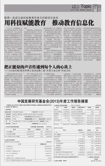 中國發(fā)展研究基金會(2013)年度工作報告摘要