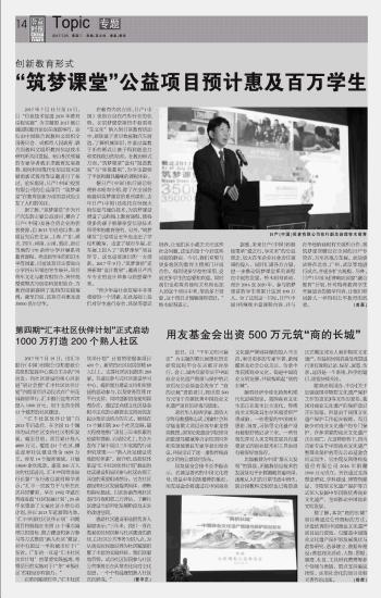 “筑夢課堂”公益項目預(yù)計惠及百萬學(xué)生