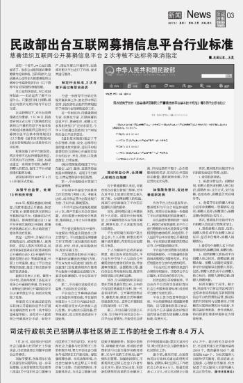 民政部出臺(tái)互聯(lián)網(wǎng)募捐信息平臺(tái)行業(yè)標(biāo)準(zhǔn)
