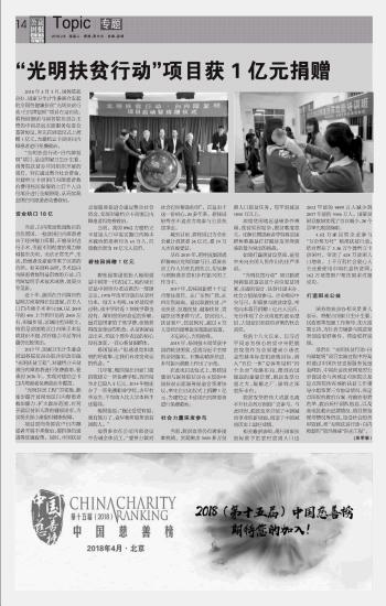 “光明扶貧行動”項目獲1億元捐贈