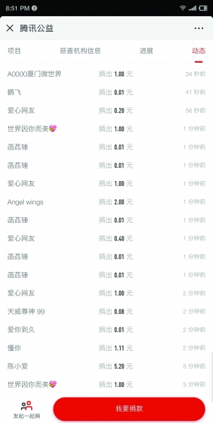 今年活動(dòng)期間,《公益時(shí)報(bào)》記者隨機(jī)抽取了部分熱門項(xiàng)目的捐贈(zèng)流水,未大面積發(fā)現(xiàn)有“刷單”現(xiàn)象(注:騰訊公益產(chǎn)品運(yùn)營團(tuán)隊(duì)認(rèn)為,一個(gè)普通用戶60秒可完成4次捐贈(zèng)),但也發(fā)現(xiàn)某些熱門項(xiàng)目下有大量0.01元的捐贈(zèng),時(shí)間間隔數(shù)秒,多數(shù)來自匿名網(wǎng)友,也發(fā)現(xiàn)有少數(shù)同一ID一分鐘內(nèi)捐贈(zèng)0.01元達(dá)到5次的情況。