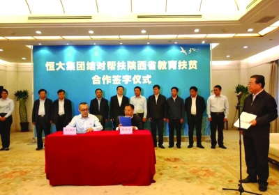 今年5月9日,恒大集團(tuán)結(jié)對幫扶陜西教育扶貧合作簽字儀式在陜西省政府舉行。恒大集團(tuán)表示,將無償捐贈10億元,用于支持陜西省30多個貧困縣、區(qū)的中小學(xué)、幼兒園建設(shè)。項目計劃在三年內(nèi)分期分批組織實施。