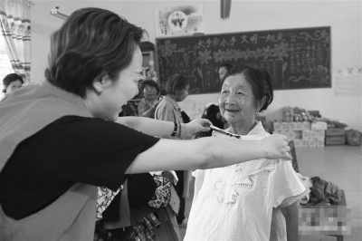 8月14日,在寧國市南極鄉(xiāng)中心小學(xué)臨時安置點(diǎn),志愿者給家住南極鄉(xiāng)龍川村的受災(zāi)群眾朱何玉(右)發(fā)放衣物。受臺風(fēng)“利奇馬”影響,安徽省寧國市部分鄉(xiāng)鎮(zhèn)受災(zāi)嚴(yán)重,一些村莊被洪水淹沒。災(zāi)情發(fā)生后,當(dāng)?shù)赝ㄟ^設(shè)立臨時安置點(diǎn)保障受災(zāi)群眾的基本生活。