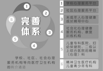 ■ 本報(bào)記者 王勇 近日,國家衛(wèi)生健康委等十二部門聯(lián)合印發(fā)《健康中國行動(dòng)——兒童青少年心理健康行動(dòng)方案(2019—2022年)》(以下簡稱《行動(dòng)方案》)。 《行動(dòng)方案》提出,為促進(jìn)兒童青少年心理健康和全面素質(zhì)發(fā)展,將實(shí)施心理健康宣教、心理健康環(huán)境營造、心理健康促進(jìn)、心理健康關(guān)愛、心理健康服務(wù)能力提升、心理健康服務(wù)體系完善等六項(xiàng)行動(dòng)。 明確行動(dòng)目標(biāo) 《行動(dòng)方案》提出了兒童青少年心理健康工作的行動(dòng)目標(biāo)。 到2022年底,實(shí)現(xiàn)《健康中國行動(dòng)(2019—2030年)》提出的兒童青少年心理健康相關(guān)指標(biāo)的階段目標(biāo),基本建成有利于兒童青少年心理健康的社會(huì)環(huán)境,形成學(xué)校、社區(qū)、家庭、媒體、醫(yī)療衛(wèi)生機(jī)構(gòu)等聯(lián)動(dòng)的心理健康服務(wù)模式,落實(shí)兒童青少年心理行為問題和精神障礙的預(yù)防干預(yù)措施,加強(qiáng)重點(diǎn)人群心理疏導(dǎo),為增進(jìn)兒童青少年健康福祉、共建共享健康中國奠定重要基礎(chǔ)。 各級(jí)各類學(xué)校建立心理服務(wù)平臺(tái)或依托校醫(yī)等人員開展學(xué)生心理健康服務(wù),學(xué)前教育、特殊教育機(jī)構(gòu)要配備專兼職心理健康教育教師。50%的家長學(xué)校或家庭教育指導(dǎo)服務(wù)站點(diǎn)開展心理健康教育。60%的二級(jí)以上精神專科醫(yī)院設(shè)立兒童青少年心理門診,30%的兒童專科醫(yī)院、婦幼保健院、二級(jí)以上綜合醫(yī)院開設(shè)精神(心理)門診。各地市設(shè)立或接入心理援助熱線。兒童青少年心理健康核心知識(shí)知曉率達(dá)到80%。 實(shí)施六大行動(dòng) 《行動(dòng)方案》提出了兒童青少年心理健康領(lǐng)域的六項(xiàng)工作。 (一)心理健康宣教行動(dòng)。 各類媒體要對(duì)兒童青少年及家長、學(xué)校教師等加強(qiáng)心理健康宣傳,傳播心理健康知識(shí),幫助全社會(huì)進(jìn)一步樹立“身心同健康”意識(shí),掌握應(yīng)對(duì)心理行為問題的方法和途徑。教育引導(dǎo)兒童青少年安全合理使用電腦和智能終端設(shè)備,預(yù)防網(wǎng)絡(luò)沉迷和游戲障礙。 各級(jí)教育、衛(wèi)生健康部門指導(dǎo)學(xué)校和醫(yī)療衛(wèi)生機(jī)構(gòu)推廣實(shí)施《學(xué)生心理健康教育指南》。各級(jí)各類學(xué)校要積極開展生命教育、親情教育、愛國教育,培養(yǎng)學(xué)生珍視生命、熱愛家人、愛國愛民的意識(shí),培育積極心理品質(zhì)。有條件的家長學(xué)?;蚣彝ソ逃笇?dǎo)服務(wù)站點(diǎn)每年至少開展一次面向家長和子女的心理健康教育。 醫(yī)療衛(wèi)生機(jī)構(gòu)要積極開展兒童青少年健康教育和科普宣傳,倡導(dǎo)兒童青少年保持健康心理狀態(tài)、科學(xué)運(yùn)動(dòng)、充足睡眠、合理膳食等,減少心理行為問題和精神障礙誘因。 (二)心理健康環(huán)境營造行動(dòng)。 各級(jí)衛(wèi)生健康部門要會(huì)同教育等部門,倡導(dǎo)實(shí)施“心理滋養(yǎng)1000天”行動(dòng),共同營造心理健康從娃娃抓起的社會(huì)環(huán)境,重點(diǎn)關(guān)注孕產(chǎn)婦、2歲以內(nèi)嬰幼兒及家長心理健康狀況,開展0~6歲兒童心理行為發(fā)育問題預(yù)警征象篩查。 學(xué)校、村(居)委會(huì)、婦聯(lián)、關(guān)工委、共青團(tuán)等機(jī)構(gòu)和組織要密切關(guān)注兒童青少年成長環(huán)境,建立完善教師或家長暴力行為、學(xué)生欺凌行為、兒童青少年受虐待問題的舉報(bào)渠道,發(fā)現(xiàn)相關(guān)問題或可疑情況時(shí),及時(shí)采取措施,向有關(guān)部門報(bào)告,并注重保護(hù)兒童青少年隱私。 村(居)委會(huì)、婦聯(lián)依托“尋找最美家庭”等活動(dòng),引導(dǎo)家長傳承良好家風(fēng),關(guān)注自身和子女心理健康,依法履行監(jiān)護(hù)責(zé)任,營造良好的家庭環(huán)境,培養(yǎng)子女健康人格和良好行為習(xí)慣。 新聞出版、網(wǎng)信、廣播電視等管理部門要加大對(duì)網(wǎng)絡(luò)內(nèi)容的監(jiān)管力度,及時(shí)發(fā)現(xiàn)清理網(wǎng)上與兒童青少年有關(guān)的非法有害出版物及信息,重點(diǎn)清查問題較多的網(wǎng)絡(luò)游戲、網(wǎng)絡(luò)直播、短視頻、教育類APP等,打擊網(wǎng)絡(luò)賭博、血腥暴力、色情低俗等網(wǎng)站和APP,為兒童青少年?duì)I造良好的網(wǎng)絡(luò)環(huán)境。 (三)心理健康促進(jìn)行動(dòng)。 各級(jí)各類學(xué)校要實(shí)施傾聽一刻鐘、運(yùn)動(dòng)一小時(shí)“兩個(gè)一”行動(dòng),即促進(jìn)學(xué)生每天與同學(xué)、家人有效溝通交流15分鐘;引導(dǎo)學(xué)生每天至少參加1小時(shí)體育運(yùn)動(dòng)。對(duì)學(xué)生開展職業(yè)生涯規(guī)劃教育,積極安排學(xué)生到有關(guān)單位觀摩體驗(yàn)。 組織開展“綠書簽”系列宣傳教育活動(dòng),引導(dǎo)學(xué)生綠色閱讀、文明上網(wǎng),自覺遠(yuǎn)離和抵制有害出版物和信息。教育部門要定期開展學(xué)生心理健康狀況和學(xué)校心理健康教育狀況調(diào)查,督促學(xué)校完善心理健康教育機(jī)制,以積極導(dǎo)向?qū)⒔Y(jié)果反饋學(xué)生家長。 (四)心理健