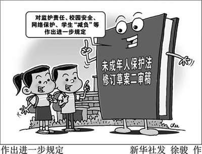 備受關(guān)注的未成年人保護(hù)法修訂草案6月28日提請(qǐng)十三屆全國(guó)人大常委會(huì)第二十次會(huì)議進(jìn)行第二次審議。對(duì)比此前的草案一審稿,草案二審稿針對(duì)當(dāng)前社會(huì)熱點(diǎn)問(wèn)題,對(duì)監(jiān)護(hù)責(zé)任、校園安全、網(wǎng)絡(luò)保護(hù)、學(xué)生“減負(fù)”等作出進(jìn)一步規(guī)定。 亮點(diǎn)一: 壓實(shí)各方監(jiān)護(hù)責(zé)任 對(duì)于心智發(fā)育不成熟,認(rèn)知、辨別能力不強(qiáng)的未成年人而言,監(jiān)護(hù)人是他們合法權(quán)益免受侵害的“保護(hù)者”,也是及時(shí)提醒糾偏,避免他們誤入歧途的“引領(lǐng)者”。然而,在現(xiàn)實(shí)生活中,未成年人監(jiān)護(hù)缺失、得不到應(yīng)有照護(hù)的情況時(shí)有發(fā)生。 為此,草案二審稿進(jìn)一步落實(shí)監(jiān)護(hù)人的責(zé)任,明確委托照護(hù)“應(yīng)當(dāng)委托具有照護(hù)能力的完全民事行為能力人代為照護(hù)”“聽(tīng)取有表達(dá)意愿能力未成年人的意見(jiàn)”,并規(guī)定未成年人的父母或其他監(jiān)護(hù)人“與未成年人和被委托人至少每月聯(lián)系和交流一次”。 “這一修改,有著很強(qiáng)的現(xiàn)實(shí)針對(duì)性。”中國(guó)刑事訴訟法學(xué)研究會(huì)副會(huì)長(zhǎng)、北京師范大學(xué)未成年人檢察研究中心教授宋英輝說(shuō),這將避免實(shí)踐中監(jiān)護(hù)人因外出務(wù)工等原因?qū)е卤O(jiān)護(hù)實(shí)際缺位的問(wèn)題,保障未成年人的安全、健康、教育等。尤其值得肯定的是,“聽(tīng)取有表達(dá)意愿能力未成年人的意見(jiàn)”的規(guī)定,可以使監(jiān)護(hù)人委托他人監(jiān)護(hù)、照護(hù)未成年人時(shí)更加審慎,更尊重未成年人的意愿,使未成年人得到更好的照護(hù)。 草案二審稿在一審稿所列舉的應(yīng)當(dāng)由國(guó)家進(jìn)行臨時(shí)監(jiān)護(hù)的情形基礎(chǔ)上,增加列舉了“監(jiān)護(hù)人因自身原因或者因發(fā)生自然災(zāi)害、事故災(zāi)難、公共衛(wèi)生事件等突發(fā)事件不能履行監(jiān)護(hù)職責(zé),導(dǎo)致未成年人監(jiān)護(hù)缺失”等三種情形。 上海社會(huì)科學(xué)院法學(xué)研究所所長(zhǎng)、上海市法學(xué)會(huì)未成年人法研究會(huì)會(huì)長(zhǎng)姚建龍表示,這一修改吸收了新冠肺炎疫情防控實(shí)踐經(jīng)驗(yàn),體現(xiàn)了國(guó)家的責(zé)任與擔(dān)當(dāng),也為疫情防控常態(tài)化提供了有力的法律保障。此外,新增加的“監(jiān)護(hù)人教唆、利用未成年人實(shí)施嚴(yán)重違法犯罪行為,未成年人需要被帶離安置”情形,也是對(duì)實(shí)踐中困擾公安司法機(jī)關(guān)打擊“懷抱嬰兒”類犯罪的針對(duì)性回應(yīng),有效填補(bǔ)了利用未成年人違法犯罪以逃避打擊的法律漏洞。 亮點(diǎn)二: 強(qiáng)化網(wǎng)絡(luò)保護(hù)相關(guān)內(nèi)容 草案二審稿擬強(qiáng)化網(wǎng)絡(luò)保護(hù)相關(guān)內(nèi)容,規(guī)定國(guó)家建立統(tǒng)一的未成年人網(wǎng)絡(luò)游戲電子身份認(rèn)證系統(tǒng),明確向未成年人提供網(wǎng)絡(luò)游戲服務(wù)的時(shí)間;要求網(wǎng)絡(luò)服務(wù)提供者對(duì)用戶和信息加強(qiáng)管理,發(fā)現(xiàn)違法信息或者侵害未成年人的違法犯罪行為及時(shí)采取相應(yīng)的處置措施等。同時(shí),對(duì)網(wǎng)絡(luò)服務(wù)提供者不依法履行預(yù)防沉迷網(wǎng)絡(luò)、制止網(wǎng)絡(luò)欺凌等義務(wù)的,規(guī)定了相應(yīng)處罰。 “盡管未成年人身心發(fā)育尚不成熟,但仍然享有網(wǎng)絡(luò)權(quán)利,立法需要在權(quán)利與保護(hù)之間進(jìn)行平衡,既不能以保護(hù)之名侵犯未成年人的網(wǎng)絡(luò)權(quán)利,也不能對(duì)未成年人網(wǎng)絡(luò)侵害放任不管。”姚建龍認(rèn)為,草案二審稿對(duì)網(wǎng)絡(luò)保護(hù)相關(guān)責(zé)任主體的責(zé)任及邊界均予以了較好的明確。未成年人網(wǎng)絡(luò)保護(hù)的基本立場(chǎng)應(yīng)當(dāng)是“外劃底線,內(nèi)強(qiáng)免疫”,確立底線規(guī)則意識(shí),以負(fù)面清單方式劃出嚴(yán)禁行為與嚴(yán)禁傳播的資訊,除此之外則應(yīng)充分尊重未成年人的網(wǎng)絡(luò)權(quán)利,注重通過(guò)引導(dǎo)、教育的方式增強(qiáng)未成年人對(duì)網(wǎng)絡(luò)不良資訊的免疫力。 亮點(diǎn)三: 完善學(xué)校安全管理制度 校園本是未成年人健康成長(zhǎng)的一方凈土,然而近年來(lái)頻發(fā)的校園安全問(wèn)題卻讓人憂心。如何讓孩子在校園更安全、家長(zhǎng)更安心?草案二審稿進(jìn)一步完善學(xué)校安全管理制度,并增加校車(chē)管理、學(xué)生欺凌等問(wèn)題的有關(guān)規(guī)定。 草案二審稿明確,學(xué)校、幼兒園應(yīng)當(dāng)建立安全管理制度,對(duì)未成年人進(jìn)行安全教育,完善安保設(shè)施、配備安保人員,保障未成年人在校、在園期間的人身和財(cái)產(chǎn)安全。 使用校車(chē)的學(xué)校、幼兒園應(yīng)當(dāng)建立健全校車(chē)安全管理制度,配備安全管理人員,定期對(duì)校車(chē)進(jìn)行安全檢查,對(duì)校車(chē)駕駛?cè)诉M(jìn)行安全教育,并向未成年人講解校車(chē)安全乘坐知識(shí),培養(yǎng)未成年人校車