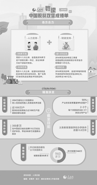 ‘歷經(jīng)8年,現(xiàn)行標(biāo)準(zhǔn)下近1億農(nóng)村貧困人口全部脫貧,832個貧困縣全部摘帽?!?/p> 新年前夕,國家主席習(xí)近平在新年賀詞中全面回顧了‘極不平凡’的2020年。扶貧話題已經(jīng)連續(xù)第七次出現(xiàn)在他的新年賀詞中,而這次,意義尤為不同。 其作始也簡,其將畢也必巨。 回顧決戰(zhàn)脫貧攻堅的偉大征程,每一個腳步都踏出奮斗和拼搏,每一幀風(fēng)景都寫滿美好和希望。 較真碰硬 一鼓作氣啃下“硬骨頭” 冬日暖陽下,貴州省望謨縣樂旺鎮(zhèn)坡頭村村民唐守芬臉上洋溢著幸福的笑容。 “家門口有錢掙,天天都是好日子嘍!”唐守芬高興地告訴人民日報記者,去年她和老伴靠著在花椒種植基地干活,全家脫了貧,越來越有干勁。 與唐守芬家一起脫貧的,還有坡頭村的28戶村民。山多地少,坡頭村一度是深貧村。為了攻下深貧堡壘,去年縣里實施掛牌督戰(zhàn),村里成立了農(nóng)民專業(yè)合作社,選定花椒為長線“大”產(chǎn)業(yè),并搭配短平快“小”產(chǎn)業(yè),還引進(jìn)了龍頭企業(yè)提供花椒技術(shù)服務(wù)。一年奮戰(zhàn)下來,脫貧戶人均純收入超過1.1萬元,穩(wěn)住了全村增收脫貧的“基本盤”。 2020年11月23日,貴州省宣布包括望謨縣在內(nèi)的剩余9個貧困縣退出貧困縣序列,至此我國832個貧困縣全部宣布脫貧。 這是一份沉甸甸的、兌現(xiàn)承諾的發(fā)展答卷。決勝之年,開局就是決戰(zhàn),起步就是沖刺。2020年3月6日,在決戰(zhàn)決勝脫貧攻堅座談會上,習(xí)近平總書記發(fā)出了總攻令—— “要繼續(xù)聚焦‘三區(qū)三州’等深度貧困地區(qū),落實脫貧攻堅方案,瞄準(zhǔn)突出問題和薄弱環(huán)節(jié)狠抓政策落實,攻堅克難完成任務(wù)?!?/p> “對52個未摘帽貧困縣和1113個貧困村實施掛牌督戰(zhàn),國務(wù)院扶貧開發(fā)領(lǐng)導(dǎo)小組要較真碰硬‘督’,各省區(qū)市要凝心聚力‘戰(zhàn)’,啃下最后的硬骨頭?!?/p> ——加大資金支持和工作指導(dǎo)力度。疫情下,資金支持不降反增,2020年中央財政專項扶貧資金達(dá)到1461億元。此外,還一次性安排脫貧攻堅補(bǔ)短板資金300億元,重點支持補(bǔ)齊因疫情導(dǎo)致的財政減收,完成剩余貧困人口脫貧任務(wù),做好貧困勞動力就業(yè)和產(chǎn)銷對接工作等。 ——強(qiáng)化督戰(zhàn)一體,幫助基層解決實際困難和問題。截至2020年7月底,52個掛牌縣15.6萬貧困人口的飲水安全、住房安全、義務(wù)教育和醫(yī)療衛(wèi)生保障方面的問題得到解決;截至2020年10月底,90%以上建檔立卡貧困人口得到了產(chǎn)業(yè)扶貧和就業(yè)扶貧支持,全國外出務(wù)工貧困勞動力2973萬人,已超2019年全年。截至2020年12月,剩余的40萬貧困搬遷群眾各地已完成相關(guān)退出工作,“十三五”時期易地扶貧搬遷任務(wù)全面完成。 ——發(fā)動社會力量,助力掛牌村脫貧攻堅。東中部11?。ㄊ校┕步M織動員1937家社會力量與掛牌督戰(zhàn)村建立結(jié)對關(guān)系,實現(xiàn)對1113個掛牌督戰(zhàn)村結(jié)對幫扶全覆蓋。 …… “中國的減貧密碼,用一句話概括就是:加強(qiáng)領(lǐng)導(dǎo)是根本、把握精準(zhǔn)是要義、增加投入是保障、各方參與是合力、群眾動力是基礎(chǔ)。這些都是我們在波瀾壯闊的脫貧攻堅實踐中形成的有益經(jīng)驗。”國務(wù)院扶貧辦主任劉永富說。 盡銳出戰(zhàn) 凝心聚力答好“民生卷” 全面打贏脫貧攻堅戰(zhàn)的收官之年,本來就有不少硬骨頭要啃,又遇新冠肺炎疫情,這場硬仗怎么打? “疫情或災(zāi)害對減貧進(jìn)程會產(chǎn)生影響。我們必須采取有效措施,將疫情的影響降到最低?!?/p> 落實分區(qū)分級精準(zhǔn)防控策略、優(yōu)先支持貧困勞動力務(wù)工就業(yè)、解決扶貧農(nóng)畜牧產(chǎn)品滯銷問題、支持扶貧產(chǎn)業(yè)恢復(fù)生產(chǎn)、加快扶貧項目開工復(fù)工……在決戰(zhàn)決勝脫貧攻堅座談會上,習(xí)近平總書記就如何統(tǒng)籌推進(jìn)疫情防控和脫貧攻堅開出“藥方”。 一個多月后,習(xí)近平總書記的身影出現(xiàn)在秦嶺深處的陜西省柞水縣小嶺鎮(zhèn)金米村。在村里的木耳展銷中心直播臺前,習(xí)近平總書記對著手機(jī)鏡頭點贊——“小木耳、大產(chǎn)業(yè)”。據(jù)媒體報道,當(dāng)晚,2000萬網(wǎng)友涌進(jìn)直播間,20多噸木耳秒光。 產(chǎn)業(yè)扶貧是啃下脫貧攻堅硬骨頭的重要舉措,消費扶貧行動則是帶動產(chǎn)業(yè)可持續(xù)發(fā)展的有效方式。回顧過去一年,我國中西部22個省份組織認(rèn)定扶貧產(chǎn)品16萬多個,全年扶貧產(chǎn)品銷售額達(dá)到3069.4億元。 夏季的洪澇災(zāi)害又帶來一輪“加試”,絕不能讓洪澇災(zāi)害造成返貧致貧。保民生所需,是當(dāng)務(wù)之急。 2020年8月18日,正在安徽省考察調(diào)研的習(xí)近平總書記來到阜南縣的紅亮箱包扶貧車間察看生產(chǎn)線,同職工面對面交流,了解阜南縣開展就業(yè)扶貧和防止因災(zāi)致貧返貧情況。 紅亮箱包有限公司是當(dāng)?shù)胤掂l(xiāng)人士創(chuàng)辦的扶貧車間,員工中有約一半為建檔立卡的貧困人口。由于當(dāng)?shù)亻_閘蓄洪、工人受困,工廠停工15天,造成損失20多萬元,但給員工的補(bǔ)貼仍然堅持發(fā)放。 總書記要求,各級黨委和政府加大扶持力度,幫助企業(yè)渡過難關(guān),