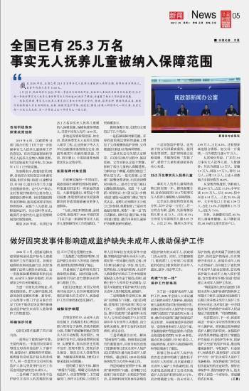 事實無人撫養(yǎng)兒童被納入保障范圍