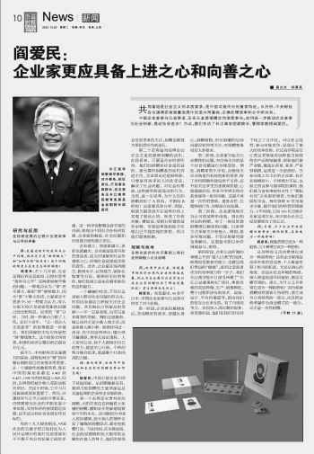 閻愛民:企業(yè)家更應(yīng)具備上進(jìn)之心和向善之心