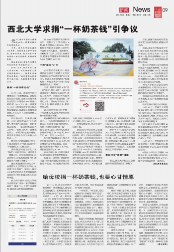 西北大學求捐“一杯奶茶錢”引爭議