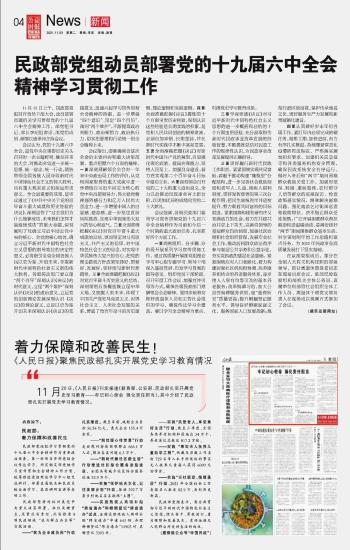 民政部黨組動員部署黨的十九屆六中全會精神學(xué)習(xí)貫徹工作