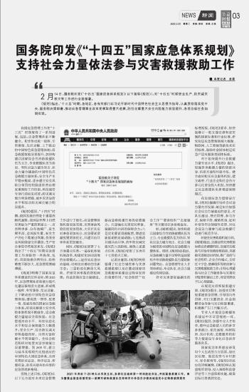 國務(wù)院印發(fā)《“十四五”國家應(yīng)急體系規(guī)劃》 支持社會力量依法參與災(zāi)害救援救助工作