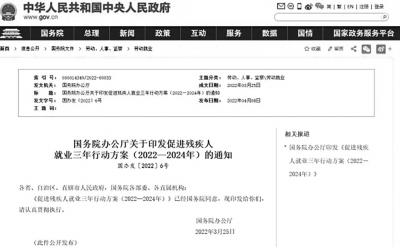 ■ 本報(bào)記者 李慶 4月8日,國(guó)務(wù)院辦公廳印發(fā)《促進(jìn)殘疾人就業(yè)三年行動(dòng)方案(2022—2024年)》(以下簡(jiǎn)稱《行動(dòng)方案》),對(duì)當(dāng)前和今后一個(gè)時(shí)期加快推進(jìn)殘疾人就業(yè)工作,實(shí)現(xiàn)“十四五”時(shí)期殘疾人較為充分、較高質(zhì)量的就業(yè)目標(biāo)作出部署。 《行動(dòng)方案》圍繞貫徹落實(shí)習(xí)近平總書記關(guān)于殘疾人事業(yè)的重要指示批示精神和黨中央、國(guó)務(wù)院決策部署,明確了2022—2024年開展促進(jìn)殘疾人就業(yè)專項(xiàng)行動(dòng)的任務(wù)目標(biāo)、主要措施和保障條件等內(nèi)容。 三年內(nèi)新增殘疾人就業(yè) 100萬(wàn)人 就業(yè)是鞏固拓展殘疾人脫貧攻堅(jiān)成果,改善殘疾人生活,幫助殘疾人邁向共同富裕的關(guān)鍵。近年來(lái),黨中央、國(guó)務(wù)院高度重視殘疾人等就業(yè)困難群體就業(yè)工作。 其中,黨的十九屆四中、五中全會(huì)對(duì)健全特殊群體就業(yè)支持體系、加強(qiáng)殘疾人就業(yè)幫扶等提出要求。習(xí)近平總書記指出,讓廣大殘疾人安居樂業(yè)、衣食無(wú)憂,過(guò)上幸福美好的生活,是我們黨全心全意為人民服務(wù)宗旨的重要體現(xiàn),是我國(guó)社會(huì)主義制度的必然要求。 近年來(lái),中央各有關(guān)部門出臺(tái)了關(guān)于促進(jìn)和發(fā)展殘疾人按比例就業(yè)、輔助性就業(yè)、集中就業(yè)、自主就業(yè)、靈活就業(yè)等各類就業(yè)形式的專項(xiàng)政策;制定了殘疾人就業(yè)保障金征管用、稅收優(yōu)惠減免、政府采購(gòu)優(yōu)先、職業(yè)技能提升等各類扶持辦法。 2019年,國(guó)務(wù)院常務(wù)會(huì)議研究、國(guó)家發(fā)展改革委等五部門聯(lián)合印發(fā)《關(guān)于完善殘疾人就業(yè)保障金制度更好促進(jìn)殘疾人就業(yè)的總體方案》。2021年10月,中國(guó)殘聯(lián)會(huì)同中央組織部、中央編辦、人力資源社會(huì)保障部、國(guó)務(wù)院國(guó)資委五部門共同印發(fā)了《機(jī)關(guān)、事業(yè)單位、國(guó)有企業(yè)帶頭安排殘疾人就業(yè)辦法》。目前,國(guó)家殘疾人就業(yè)政策體系相對(duì)完備,通過(guò)開展專項(xiàng)行動(dòng)以有效匯集、落實(shí)、推廣現(xiàn)有扶持政策,讓更多符合條件的殘疾人實(shí)現(xiàn)就業(yè)應(yīng)當(dāng)成為當(dāng)前和今后一個(gè)時(shí)期的工作重點(diǎn)。 《行動(dòng)方案》提出,將幫扶有就業(yè)需求和就業(yè)條件的城鄉(xiāng)未就業(yè)殘疾人作為今后三年階段性工作的重點(diǎn)。 《行動(dòng)方案》要求機(jī)關(guān)、事業(yè)單位帶頭安排殘疾人就業(yè)行動(dòng),確?!笆奈濉逼陂g編制50人(含)以上的省級(jí)、地市級(jí)機(jī)關(guān)和編制67人(含)以上的事業(yè)單位(中小學(xué)、幼兒園除外),安排殘疾人就業(yè)未達(dá)到規(guī)定比例的,至少安排一名殘疾人就業(yè)。 就此,《行動(dòng)方案》提出,以有就業(yè)需求和就業(yè)條件的城鄉(xiāng)未就業(yè)殘疾人為主要對(duì)象,更好發(fā)揮政府促進(jìn)就業(yè)的作用,進(jìn)一步落實(shí)殘疾人就業(yè)創(chuàng)業(yè)扶持政策,加大殘疾人職業(yè)技能培訓(xùn)力度,不斷提升殘疾人就業(yè)服務(wù)質(zhì)量和效益,穩(wěn)定和擴(kuò)大殘疾人就業(yè)崗位。2022—2024年共實(shí)現(xiàn)全國(guó)城鄉(xiāng)新增殘疾人就業(yè)100萬(wàn)人,殘疾人就業(yè)創(chuàng)業(yè)能力持續(xù)提升,殘疾人就業(yè)權(quán)益得到更好保障,推動(dòng)形成理解、關(guān)心、支持殘疾人就業(yè)創(chuàng)業(yè)的良好社會(huì)環(huán)境。 三年內(nèi)實(shí)施“十項(xiàng)行動(dòng)” 《行動(dòng)方案》決定,在三年內(nèi)實(shí)施“十項(xiàng)行動(dòng)”: 一是機(jī)關(guān)、事業(yè)單位帶頭安排殘疾人就業(yè)行動(dòng)。首次明確要求建立統(tǒng)計(jì)和公示制度,切實(shí)增加機(jī)關(guān)和事業(yè)單位安排殘疾人就業(yè)的透明度。同時(shí)對(duì)省、市、縣、鄉(xiāng)四級(jí)都提出了安排殘疾人就業(yè)的具體要求; 二是國(guó)有企業(yè)安排殘疾人就業(yè)行動(dòng); 三是民營(yíng)企業(yè)安排殘疾人就業(yè)行動(dòng)。要求通過(guò)組織符合條件的國(guó)有企業(yè)、民營(yíng)企業(yè)拿出一批崗位定向招錄殘疾人就業(yè),三年內(nèi)爭(zhēng)取集中幫助較大規(guī)模的殘疾人就業(yè),對(duì)未按比例安排殘疾人就業(yè)的,則通過(guò)及時(shí)足額繳納殘保金、納入企業(yè)社會(huì)責(zé)任報(bào)告予以規(guī)范; 四是殘疾人組織助殘就業(yè)行動(dòng),要求對(duì)近年來(lái)不同類別殘疾人就業(yè)典型案例和成功經(jīng)驗(yàn)進(jìn)行整理推廣,打造殘疾婦女“美麗工坊”等品牌,幫助各地各類殘疾人組織或助殘就業(yè)組織找到工作方向,更有工作遵循; 五是就業(yè)困難殘疾人就業(yè)幫扶行動(dòng),要求地市級(jí)普遍開展輔助性就業(yè)項(xiàng)目勞動(dòng)調(diào)配工作,以解決輔助性就業(yè)勞動(dòng)項(xiàng)目不足的短板; 六是農(nóng)村殘疾人就業(yè)幫扶行動(dòng),著重延續(xù)殘疾人脫貧攻堅(jiān)政策措施和幫扶機(jī)制,以防止已經(jīng)脫貧殘疾人的再度返貧; 七是殘疾人大學(xué)生