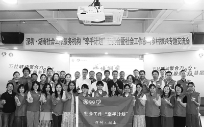 5月11日,深圳市“十四五”期間深圳·湖南社會(huì)工作“牽手計(jì)劃”啟動(dòng)儀式在深圳市點(diǎn)亮心光社會(huì)工作服務(wù)中心會(huì)議室舉行,同時(shí)新一期深圳·湖南社會(huì)工作“牽手計(jì)劃”正式開啟。深圳市民政局慈善事業(yè)促進(jìn)和社會(huì)工作處肖敏智、深圳市鄉(xiāng)村振興和協(xié)作交流局鄉(xiāng)村振興處李星參加了會(huì)議。北京大學(xué)深圳人文學(xué)院執(zhí)行院長于長江、各“牽手計(jì)劃”援派機(jī)構(gòu)代表及新疆喀什及廣西大化等地的深圳社工通過線上、線下的形式參與了會(huì)議。 會(huì)議分為啟動(dòng)會(huì)與專題交流會(huì)兩個(gè)環(huán)節(jié)。在啟動(dòng)會(huì)上,李星就“學(xué)習(xí)《鄉(xiāng)村振興促進(jìn)法》”進(jìn)行了分享,增進(jìn)了援派機(jī)構(gòu)、對口支援社工對鄉(xiāng)村振興政策的理解和認(rèn)識(shí)。肖敏智對“十三五”期間“牽手計(jì)劃”取得的成效給予了充分肯定,并進(jìn)行了動(dòng)員講話,提出在“十四五”期間“牽手計(jì)劃”中,廣大社工們要提高站位、提前部署、相互學(xué)習(xí)、真抓實(shí)干,不斷優(yōu)化細(xì)化服務(wù)、認(rèn)真總結(jié)梳理經(jīng)驗(yàn)。 在專題交流環(huán)節(jié),彩虹督導(dǎo)張露露、海同駐大化社工站站長王道俊、深喀社工站站長董歡、新現(xiàn)代副總干事韋曉冬分別就深圳社工參與“牽手計(jì)劃”、開展廣西大化社工站扶貧服務(wù)、對口支援新疆喀什、開展肇慶家政人員就業(yè)幫扶等服務(wù)經(jīng)驗(yàn)進(jìn)行了專題分享。 據(jù)悉,2017年,民政部實(shí)施了引導(dǎo)先發(fā)地區(qū)社會(huì)工作服務(wù)機(jī)構(gòu)結(jié)對幫扶貧困地區(qū)社會(huì)工作服務(wù)機(jī)構(gòu)的“牽手計(jì)劃”,深圳市民政局積極響應(yīng)號(hào)召,于2017年至2020年間實(shí)施了深圳·湖南社會(huì)工作“牽手計(jì)劃”。期間,深圳市先后遴選了20家優(yōu)秀社工服務(wù)機(jī)構(gòu),與湖南省長沙市、株洲市、張家界市等11個(gè)地市州17個(gè)區(qū)縣的20家機(jī)構(gòu)“牽手”結(jié)對,累計(jì)援派社工251人,與湖南省526名社工結(jié)對,協(xié)助當(dāng)?shù)嘏囵B(yǎng)社工人才超2000人,拓建社工服務(wù)站超150個(gè),優(yōu)化社會(huì)服務(wù)項(xiàng)目超100個(gè),服務(wù)直接惠及湖南當(dāng)?shù)鼐用窠娜f人。 2021年12月,民政部、國家鄉(xiāng)村振興局聯(lián)合印發(fā)《“十四五”時(shí)期社會(huì)工作服務(wù)機(jī)構(gòu)“牽手計(jì)劃”實(shí)施方案》,提出要積極發(fā)揮社會(huì)工作專業(yè)力量在鞏固拓展脫貧攻堅(jiān)成果同鄉(xiāng)村振興有效銜接中的作用,“十四五”時(shí)期繼續(xù)實(shí)施社會(huì)工作服務(wù)機(jī)構(gòu)“牽手計(jì)劃”。 (據(jù)深圳市民政局) |
