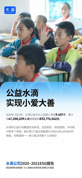 7月29日,水滴公司對外發(fā)布2020·2021ESG報告,報告從公司治理、社會責任、科技與產品、行業(yè)價值鏈、職場建設、綠色發(fā)展等多議題領域展開,披露了水滴公司2020年—2021年的ESG表現(xiàn)。 《報告》顯示,2020年1月1日至2021年12月31日間,水滴公益平臺共計上線9451個項目,覆蓋抗疫行動、應急救災、鄉(xiāng)村振興等多個議題,累計募得善款833776562元,捐贈47258209人次。 2020年新冠疫情之初,水滴公益就聯(lián)合20多家公募機構,共籌集抗疫救助款超6500萬元,用于采購醫(yī)用口罩、防護服等防疫等物資。同期,水滴公益聯(lián)合中國社會福利基金會發(fā)起“逆行者守護計劃”公益項目,為不幸感染新型冠狀病毒肺炎/因抗擊新冠因公殉職的疫情防護一線人員提供救助金/慰問金。 重大災害發(fā)生時,水滴公益可以同步啟動公益項目,整合各方力量,發(fā)放救災物資,保障當?shù)鼐用駷暮笊钌a恢復,2021年河南特大暴雨水滴公益上線的系列賑災項目共計籌集善款1680.84萬元,幫助轉移、安置受災群眾20.9萬余人次;面對貧困大病家庭的就醫(yī)難題,水滴公益推出“鯨魚寶貝計劃”幫助公募基金會為0-18歲大病患兒籌集了超過1.5億元醫(yī)療資金,近484萬愛心網友參與,1795個患兒家庭從中受益;為了給予患者及家庭經濟以外的支持,水滴公益建立“水滴公益愛心小家”,為異地就診的大病患者提供住宿、休息場所和活動空間,已在全國7個城市建成30多個。 《報告》顯示,在助力鞏固拓展脫貧攻堅成果同鄉(xiāng)村振興有效銜接方面,“水滴鄉(xiāng)村醫(yī)務室”項目,已在河北張家口、新疆和田墨玉、云南昭通、貴州思南、河北承德和甘肅酒泉等地區(qū)建成64個醫(yī)務室,受益人數(shù)超15萬。在此基礎上,水滴將推出“水滴鄉(xiāng)村醫(yī)務室百縣千村公益計劃”,到2030年,將在全國100個縣落地1000個醫(yī)務室,為鄉(xiāng)村振興、健康中國貢獻更多力量。 水滴公司創(chuàng)始人兼CEO沈鵬表示,希望與所有員工在同樣的使命感和社會責任感驅動下,主動解決社會問題?!拔覀円黄鸨种撠熑?、可持續(xù)的價值觀,將ESG(環(huán)境、社會與公司治理)全面融入公司發(fā)展的血液,通過對社會問題的深入關切和分析,以科技的力量,共同為構建更美好的社會而不懈努力?!保ㄍ跤拢?/p> |