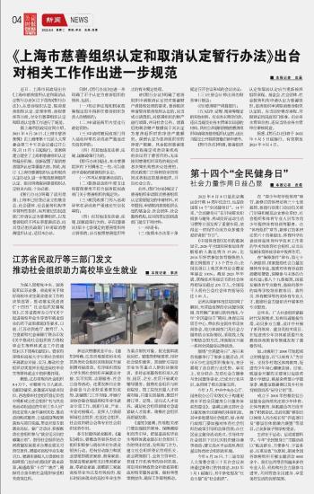 《上海市慈善組織認定和取消認定暫行辦法》出臺 對相關工作作出進一步規(guī)范