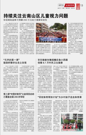 持續(xù)關注云南山區(qū)兒童視力問題 依視路陸遜梯卡捐贈250萬元視力健康促進包