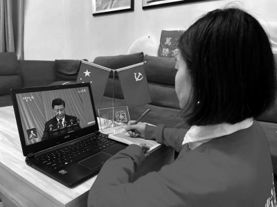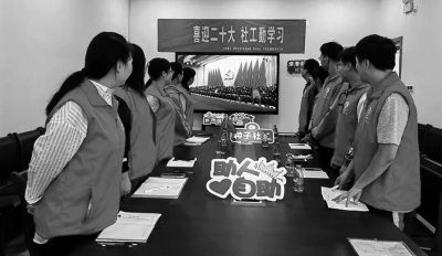 山東省社會工作協(xié)會組織員工收看黨的二十大開幕會(吳巖婷/攝)