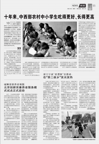 十年來,中西部農(nóng)村中小學生吃得更好、長得更高